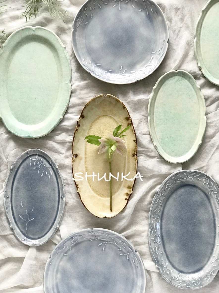 爽やかな薄浅葱(うすあさぎ)色の稜花オーバルプレートなど、
