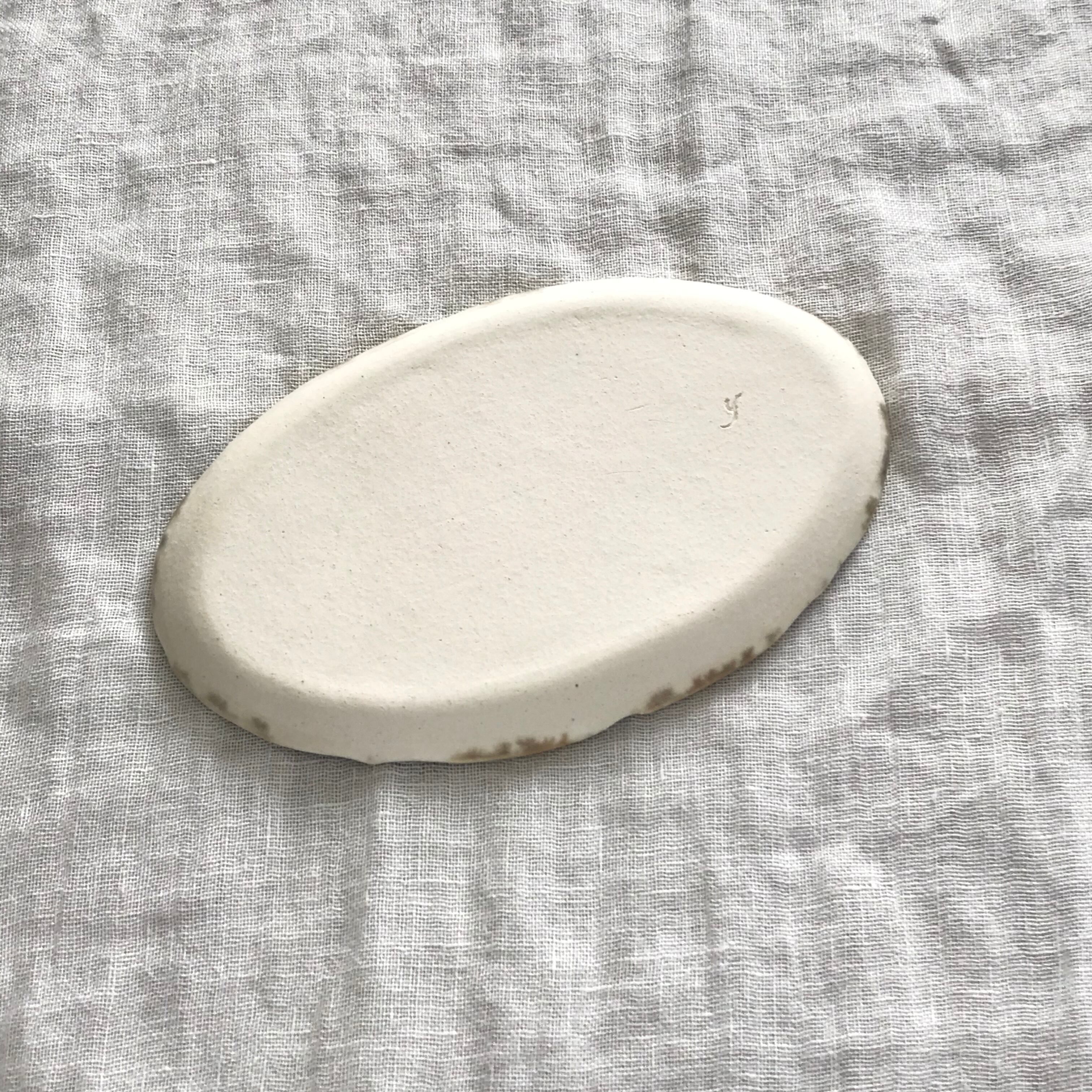 温かみのある優しいオフホワイトに、リムの錆色がアクセントになっています。やさしい色合いと手びねりの穏やかなラインが温かみを感じさせてくれます。